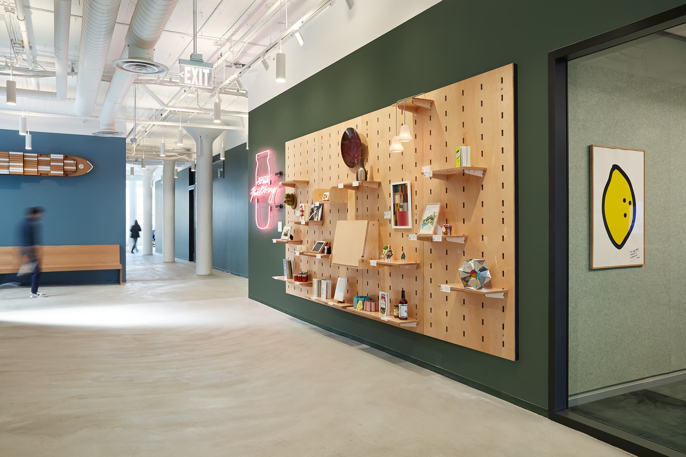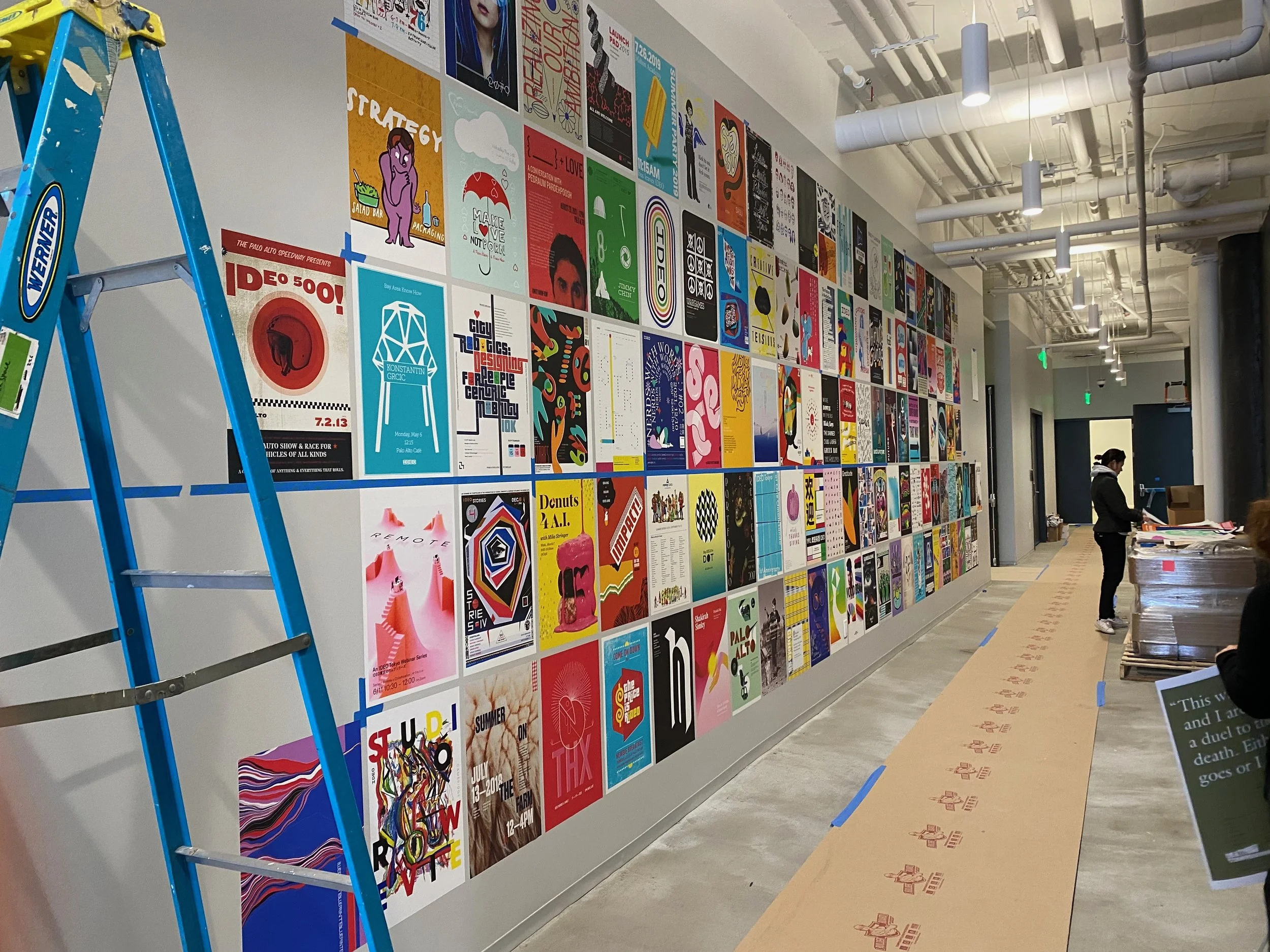 A Fillmore-inspired poster wall chronicles company events and milestones while showcasing employees’ visual design chops.